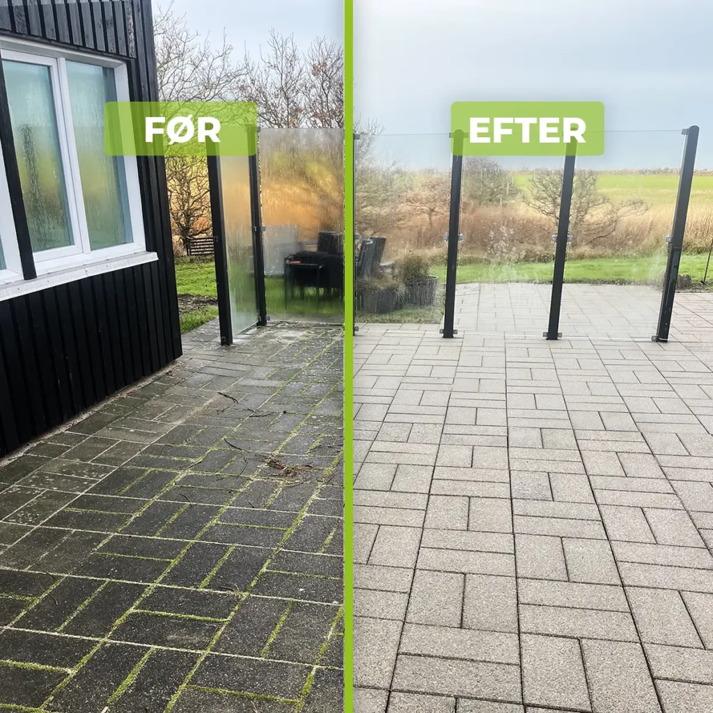 Vores professionelle algebehandling forebygger mos, alger og grønne belægninger, så både tag og fliser holder sig rene og længerevarende. Vi tilbyder sikre og effektive løsninger for private hjem i Vejle-området.