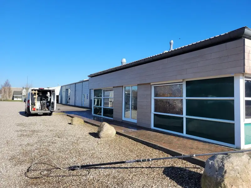 Vi har besøgt Tønder Dyrehospital for at rense facaden, så både personale og de firbenede besøgende kan nyde de flotte omgivelser. Facaden af skifer blev grundigt renset med hedvand og forlængerlanse, en metode der kombinerer varmt vand (over 80 °C) med højt tryk for effektiv fjernelse af snavs, alger og andre belægninger.