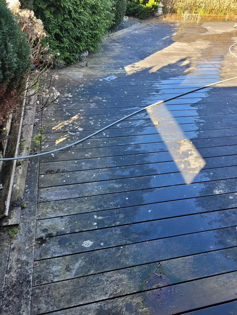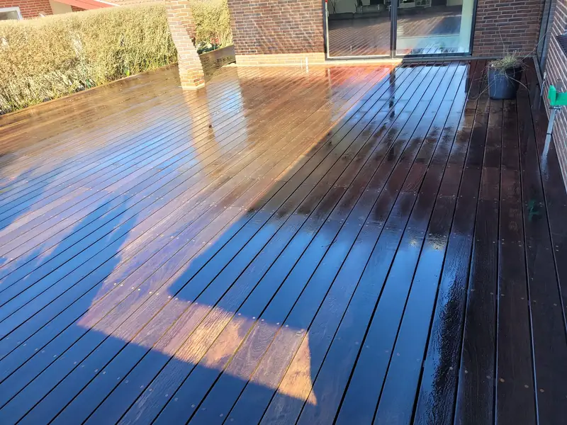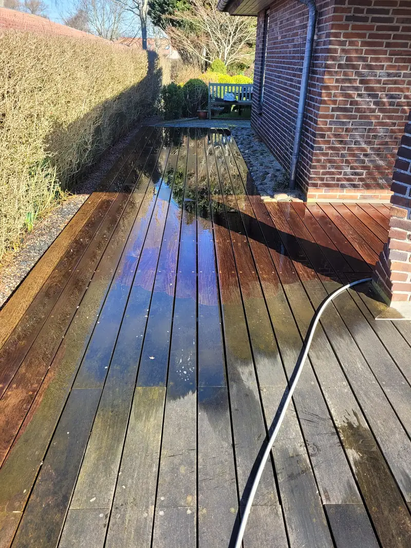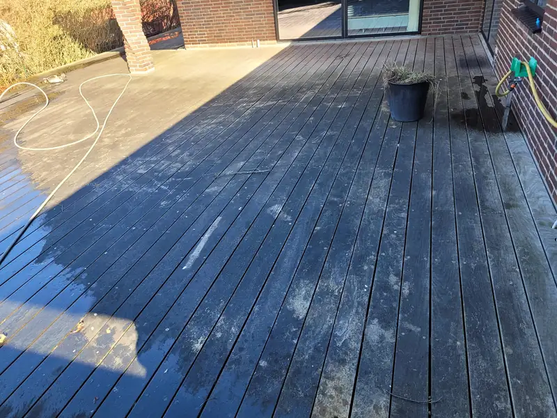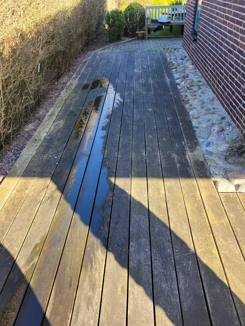 Hos en privat kunde har vi udført rens af træterrasse, hvor målet var at gøre terrassen sikker at gå på og få den til at se næsten som ny ud.