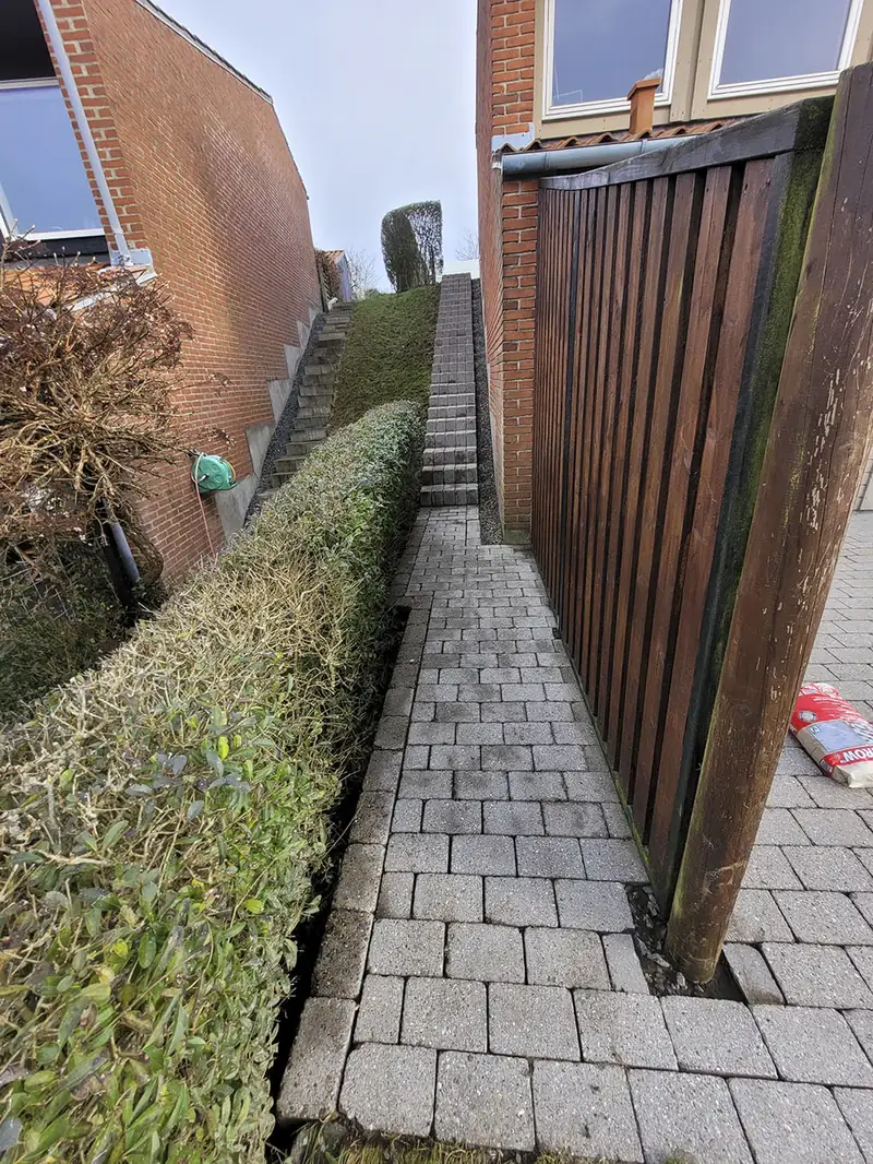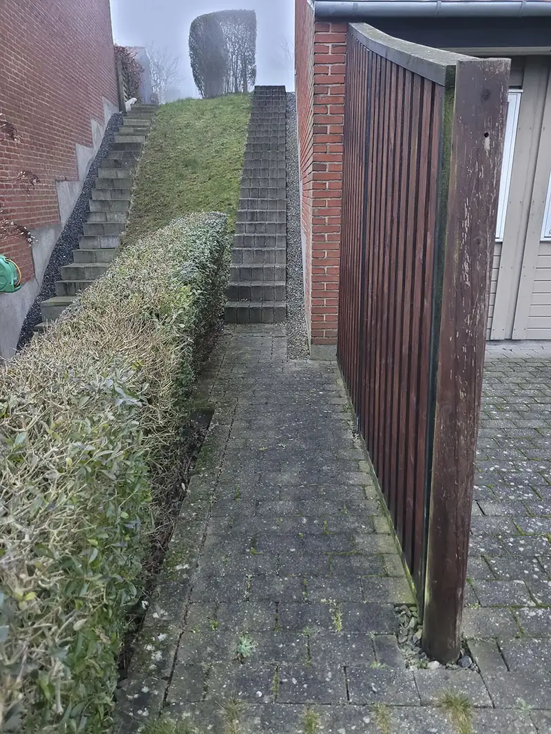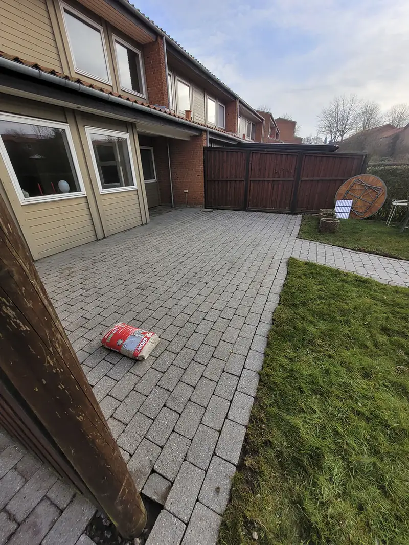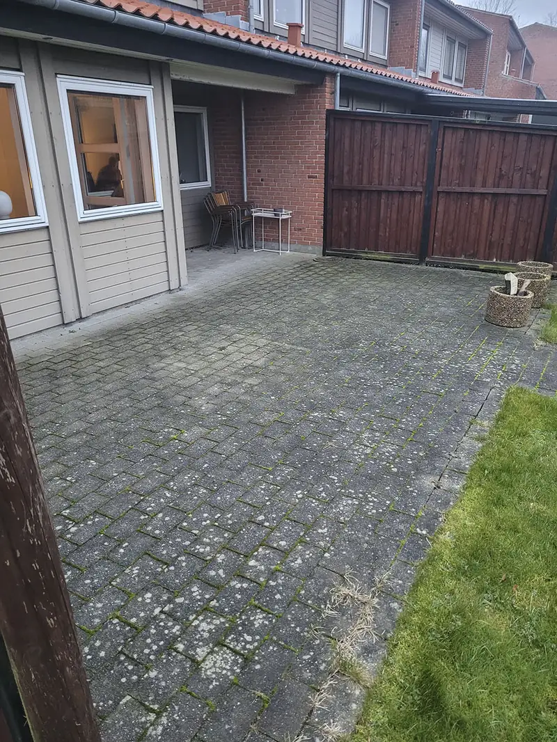 Afrensning af fliser (Holmegårdssten) hos privat kunde i Fredericia med højtryksrenser/hedvand ved 300 bar. Samlet flisearel med terrasse, indkørsel samt gangbaner på 130 m2 er i tillæg algebehandlet og imprægneret. Afslutningsvist er lagt nyt fugesand. Se det flotte resultat i billedgalleriet nederst på siden.