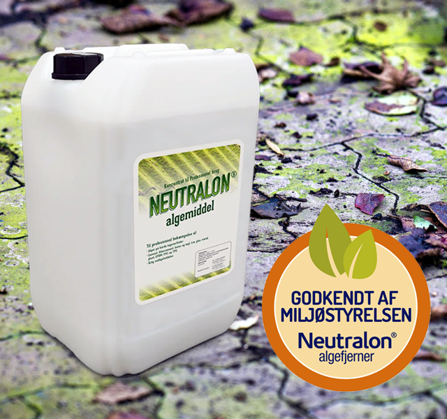 Hos Jysk Algeservice går vi op i kvalitet og miljø, og derfor anvender vi Neutralon – en danskproduceret og Miljøstyrelsesgodkendt algefjerner. Neutralon er udviklet til professionel bekæmpelse af alger på hårde overflader som beton, tegl, træ, metal, plast og glas – uden at misfarve zink.