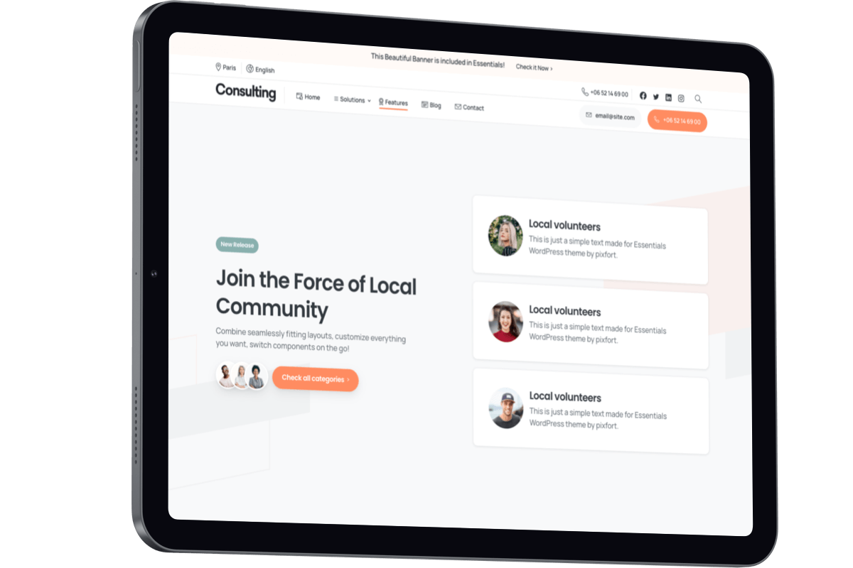 Essentials WordPress theme provides a large collection of professional and premium templates for every kind of business.
